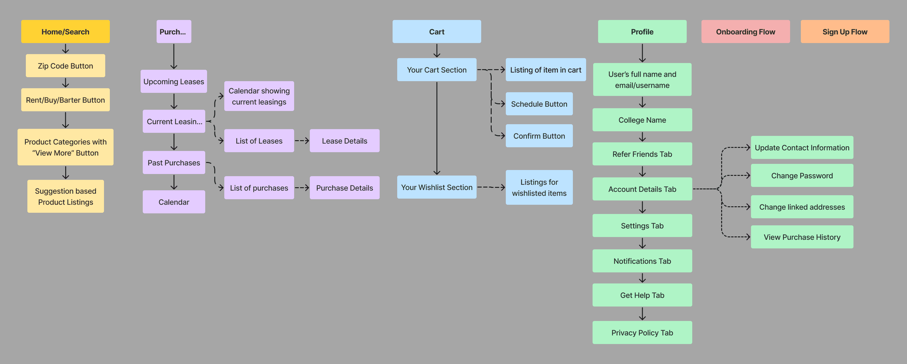 With these constraints in mind, I began structuring the platform around the core actions students needed to complete an exchange. The goal was to keep these flows simple while supporting multiple exchange types such as buying, selling, and renting.
